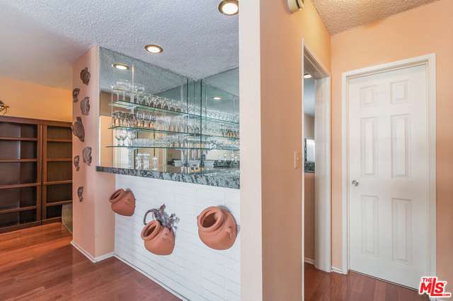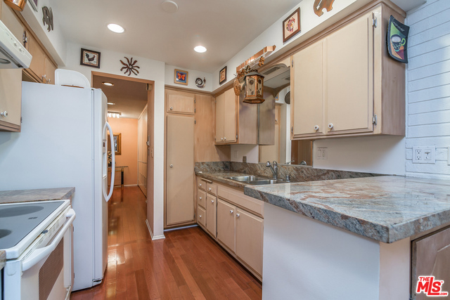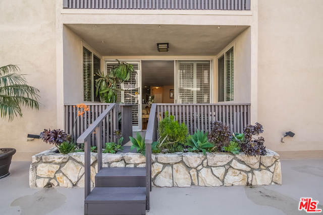 Wonderful 3 bedroom + 3 bath single-level quiet rear unit situated in serene courtyard setting in resort like bldg with no Bundy noise. Right in the heart of Brentwood where you can stroll to trendy boutiques, great restaurants, coffee shops, Whole Foods and Sunday's Farmers market. Formal entryway w/wall of closets leads to spacious living room w/a granite bar, gorgeous gleaming hardwood floors, fireplace, plantation shutters & sliding glass door that opens to nice patio w/easy access to sparking pool & jacuzzi. Kitchen has lovely granite countertops & dining room is immediately adjacent. Gracious size master suite w/walk-in closet + wardrobe closet and updated master bath. Double panned windows, 2 Side by side gated parking spaces w/extra storage. Bldg has beautiful newly remodeled hallways & lobby + strong reserves of 1/2 million dollars. Amenities include: pool, jacuzzi, fitness center & community room. HOA includes: Earthquake insurance, water, gas, Cable TV incl. HBO & Showtime.