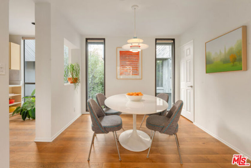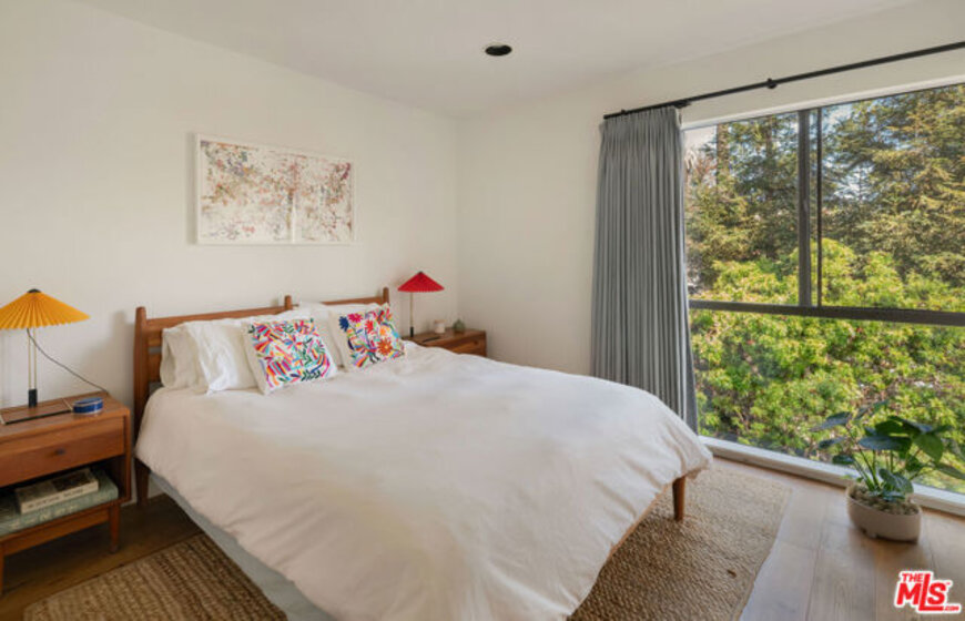 Architectural Brentwood Townhouse with Pool and Sauna. Tucked into a small, well-maintained community with low turnover, this front-facing, sun-soaked townhouse offers 2-bed, 2.5-bath plus a den and pool in prime Brentwood. The main living level is anchored by a statement fireplace and floor-to-ceiling windows that flood the space with natural light and frame peaceful garden views. Wide plank European white oak floors run throughout. The dining area and kitchen flow naturally from the living areas and are thoughtfully designed for both everyday living and entertaining with a large pantry and generous storage. Sliding doors open to a serene patio with ipe wood fencing and hedges for added privacy, with a direct-access gate to the heated pool and infrared sauna.Up the staircase, crowned by a skylight that pours light onto the landing, the primary suite is an architectural statement in its own right. Vaulted ceilings and a brick fireplace elevate the space, complete with a spacious adjoining den for flexible office or lounge use, two custom closets designed by California Closets, and an en-suite bathroom. The second bedroom is served by a fully renovated bathroom featuring hand-selected blue tile drawn from the coastal palette of Puerto Vallarta. Additional highlights include a powder room, entire home water-filtration system, in-unit laundry, private 2-car garage with direct access into the unit, and a beautiful setting among mature trees and lush grounds designed by a landscape architect. HOA dues include earthquake insurance. A few blocks from the Brentwood Farmers Market, minutes from the restaurants and boutiques along San Vicente, the Brentwood Country Club, and the Brentwood Country Mart, and a short drive to the beach this is a rare opportunity for a home with direct street access in a community where units seldom come available.