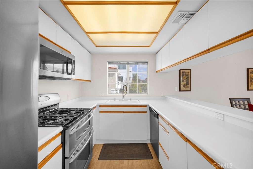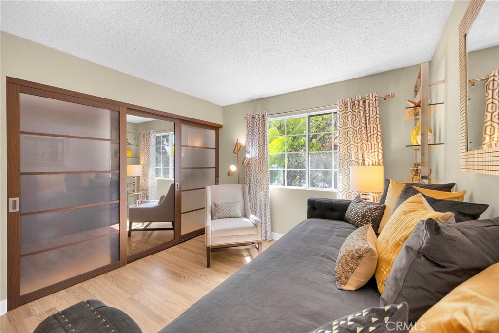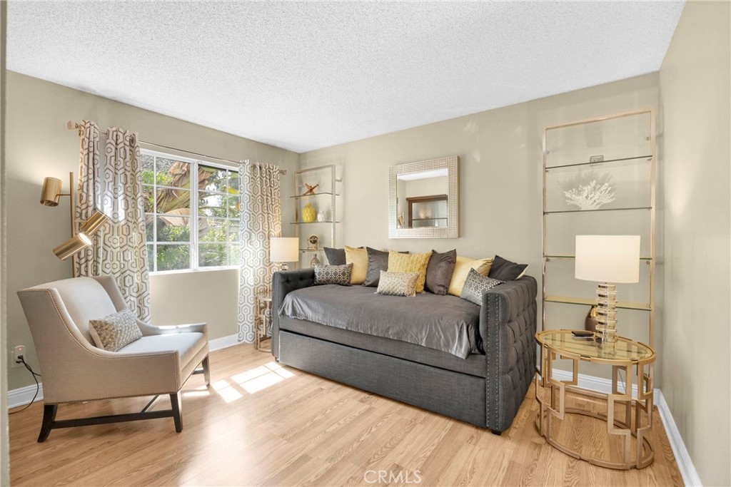 Discover modern sophistication in this front-facing tri-level townhouse at 871 S Lucerne Blvd, ideally located in a gated community across from Harold A. Henry Park. Set on a picturesque, tree-lined street in the coveted Windsor Village neighborhood, this premier unit offers an expansive and light-filled layout with soaring ceilings and oversized windows. Downstairs, you’ll find two spacious bedrooms and a full bath, while the top level features a versatile loft-style third bedroom—complete with a closet and private balcony—perfect for guests, a home office, or creative space. Thoughtfully designed for comfort and convenience, the home also includes a dedicated laundry room and two secure parking spaces. Enjoy peaceful park views and walkable access to the Wilshire Ebell Theatre, with the best of the city just minutes away. This is a rare opportunity—come experience it for yourself!