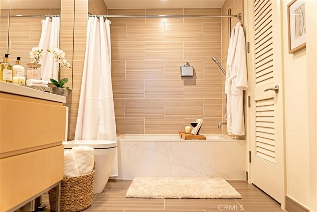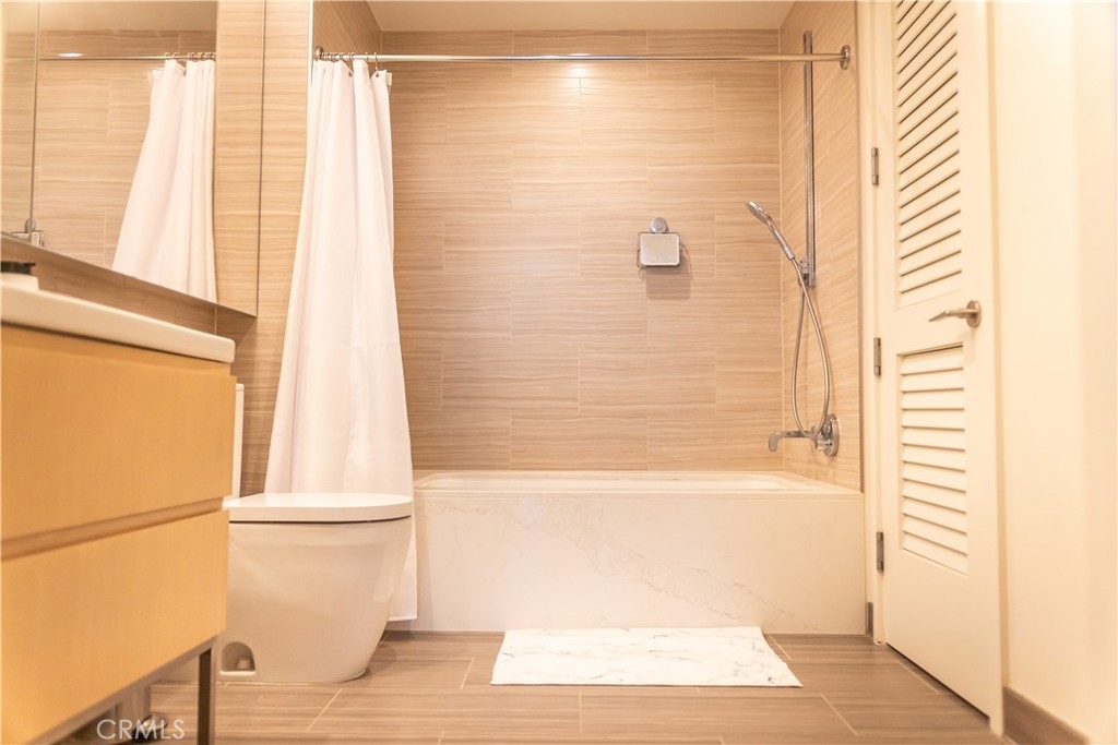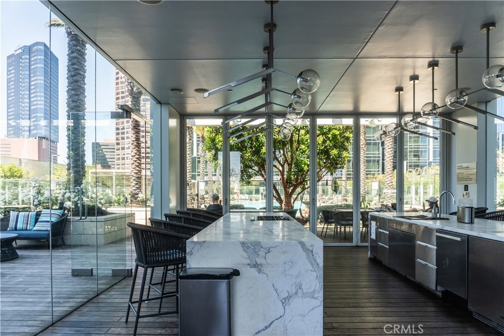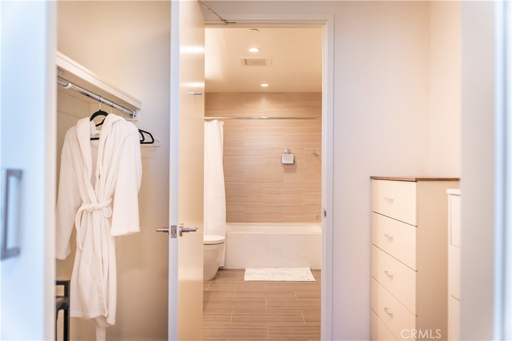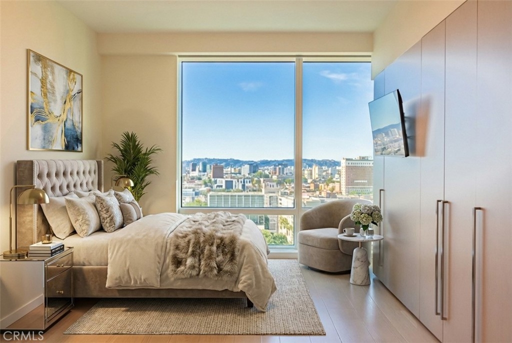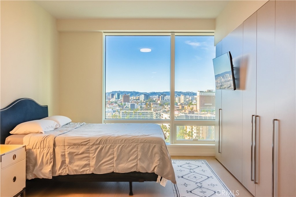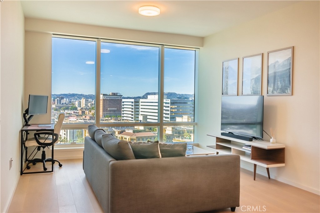 VISTAS! VISTAS! VISTAS! Step into effortless luxury at Unit 1801, a beautifully appointed one-bedroom, one-and-a-half-bath residence perched high above the energy of Downtown Los Angeles at the renowned Metropolis. This north-facing home commands breathtaking views of the legendary Hollywood Sign and the Griffith Observatory, offering a dramatic and distinctly Los Angeles backdrop that elevates everyday living. Designed for those who crave both comfort and sophistication, this residence blends sleek modern design with thoughtful details throughout. Inside, you’ll find top-of-the-line Miele appliances, Caesarstone countertops, and custom European cabinetry accented by under-cabinet LED lighting. The spa-inspired ensuite bath features a deep soaking tub and Hansgrohe fixtures, while a generous closet delivers stylish, functional storage. Expansive floor-to-ceiling windows flood the home with natural light and frame the city’s most celebrated landmarks. The unit also includes one designated parking space in the secure, gated garage. But the lifestyle doesn’t stop at your doorstep. Metropolis is Downtown’s premier resort-style address, offering over one-hundred thousand square feet of curated amenities—headlined by a state-of-the-art fitness center outfitted with premium TechnoGym equipment. Additional highlights include an Olympic-sized pool, steam rooms, putting green, ping pong tables, a skypark with sweeping Hollywood Sign views, business center, a 21st-floor grill deck, yoga studio, private movie theater, dog park, and 24/7 concierge services. Complimentary coffee is always on tap—perfect for your morning routine or a midday recharge. Located at 877 Francisco Street, Metropolis places you at the center of it all, just moments from L.A. LIVE, Crypto.com Arena, numerous gyms, and rooftop favorites like Perch. Gas, water, trash, and parking are all included in the HOA, making luxury living here both seamless and smart. Unit 1801 isn’t just a place to live—it’s your private retreat, your elevated vantage point over the city’s most storied sights, and your opportunity to own within one of Los Angeles’ most coveted vertical communities. Virtually staged/edited.