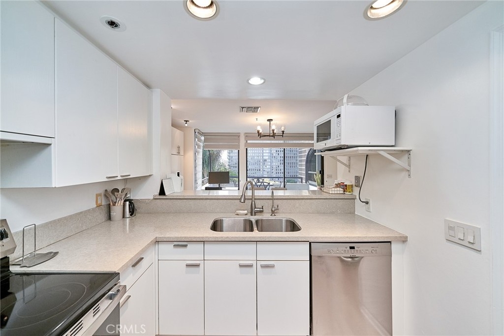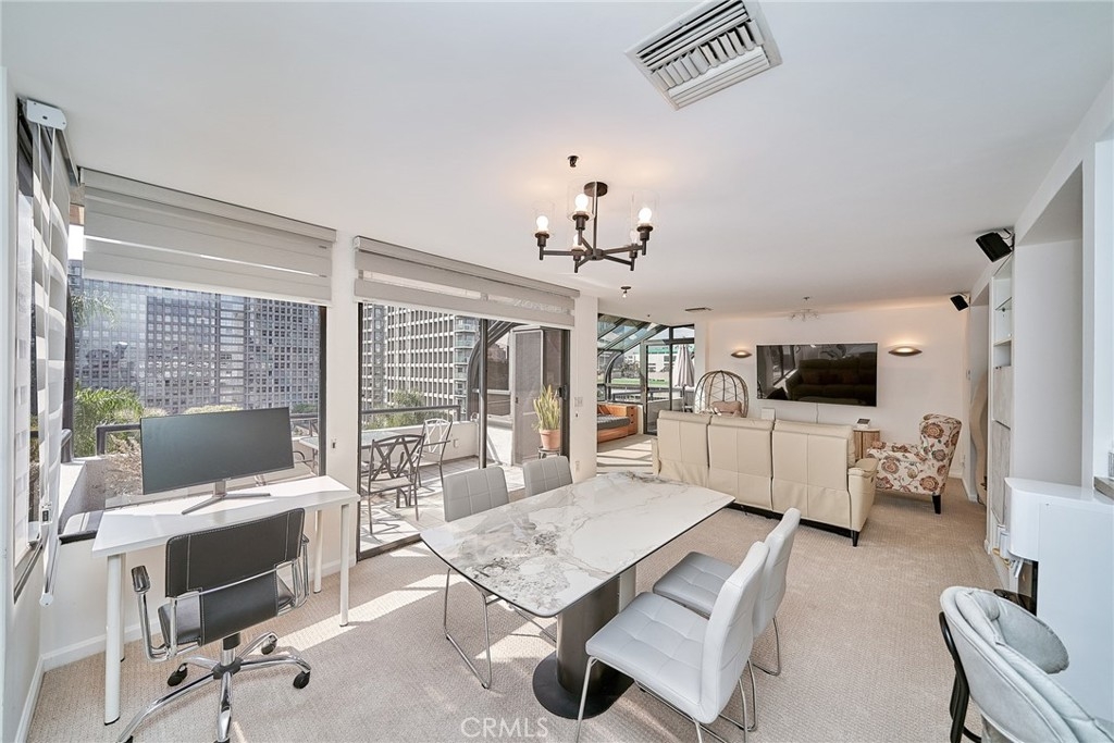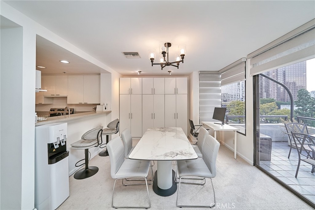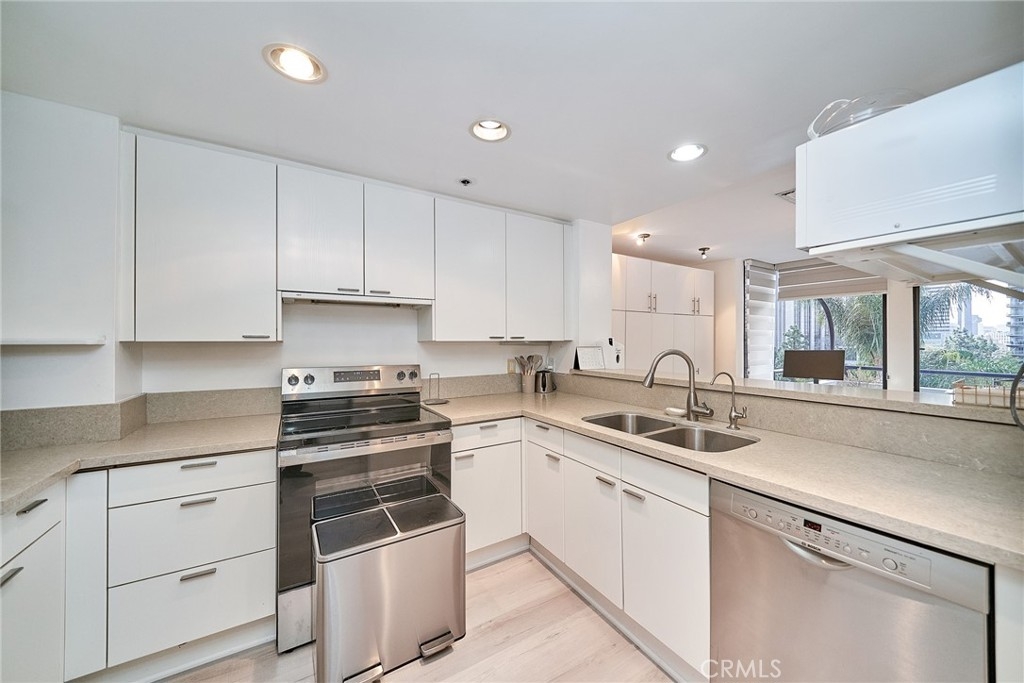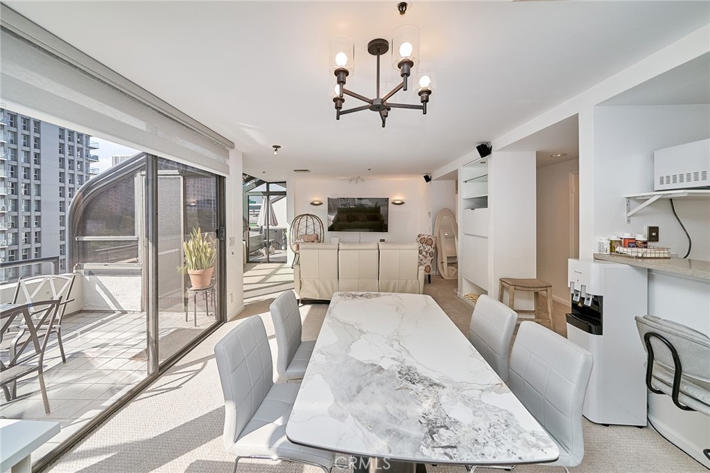 This beautiful penthouse unit in DTLA showcases the best skyline views and is a rare find at Promenade West Condos. Recently upgraded with new paint, carpets, and cabinets, the interior has been transformed. Spanning 1,028 square feet, it features a spacious, bright open floor plan with two large private balconies offering stunning downtown skyline views and equipped with folding shades. Natural light pours in from the south, providing sweeping vistas of the Broad Museum, the DTLA skyline, and courtyard palm trees. Designed by a professional, the interior includes built-in seating, ample storage space, and a stylish bar nook. The kitchen boasts new tile flooring, complementing the overall aesthetic. A generously sized master walk-in closet with well-organized shelves adds convenience. Conveniently located, the unit includes one assigned parking space in the underground garage entrance, with additional spaces available for monthly purchase if needed. Promenade West offers luxurious amenities akin to a hotel, including 24-hour security, swimming pools, spas, exercise rooms, saunas, onsite management, and basic cable TV. Common areas feature onsite dog parks, lush green gardens, and serene waterfalls. Local amenities such as convenience stores, dry cleaners, and delivery services are within easy reach. The location is ideal for walking to nearby attractions including the Disney Concert Hall, Ahmanson Theater, Mark Taper Forum, Dorothy Chandler Pavilion, Grand Park, Broad Museum, restaurants, courthouses, city hall, and the Metro Regional Connector. HOA membership fees cover water, waste disposal, general liability/fire insurance, and earthquake insurance. Residents are responsible for electricity and internet costs.