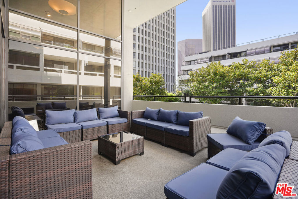 Stunning remodeled unit with quiet poolside & city views at the Promenade West. Prime downtown location with a short distance to courthouses and civic buildings. Large & Bright Open Floor Plan w/ 1006 SQFT of Living Space + 2 large private balconies with retractable awning. North East exposure offers an abundance of natural light as well as expansive views of the city, courtyard tree tops, and cooler temperatures. Kitchen has been modernized with new mid-century cabinetry, tiled backsplash, quartz countertops, and stainless steel appliances. Remodeled bathroom showcases designer tiled flooring, tiled shower, lighting, cabinetry, and vanity. Hardwood floors throughout living space along with stone tiled flooring in kitchen. Large Master Walk In Closet. 1 assigned parking space in underground secured garage included. Additional monthly parking available if needed. Promenade West is a Full Service Luxury Condominium Community Offering Ample Guest Parking, 24-Hour Security/Concierge, Pool, Spa, Exercise Room, Sauna, On Site Manager, & Basic Cable TV. Common Area Offers On-Site Dog Park, Lush Green Gardens w/ Serene Waterfalls. Local Convenience Store & Dry Cleaners Just Steps Away. Walk to Disney Concert Hall, Ahmanson Theater, Mark Taper Forum, Dorothy Chandler Pavilion, Grand Park, The Broad Museum, Restaurants, Courts, City Hall, & Metro Regional Connector. Walking score of 94 and a public transit score of 100. HOA dues cover water, trash, General liability/fire + EQ insurance. Residents pay for their own electricity + internet.