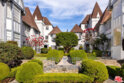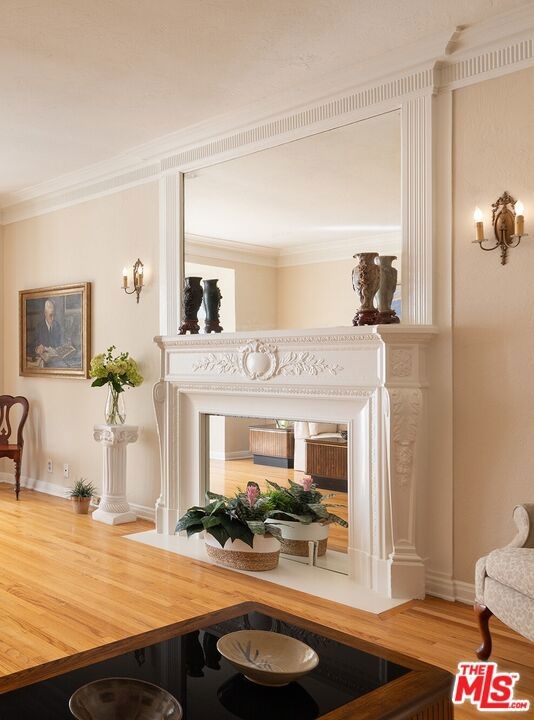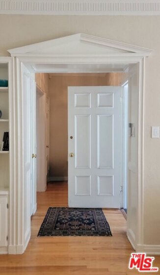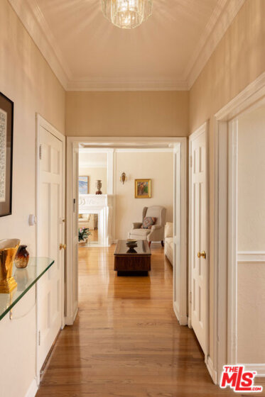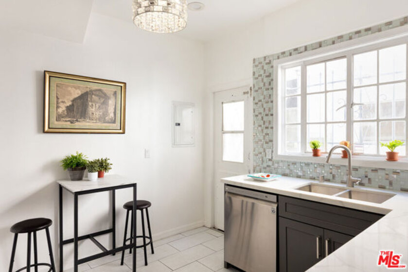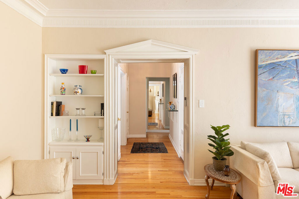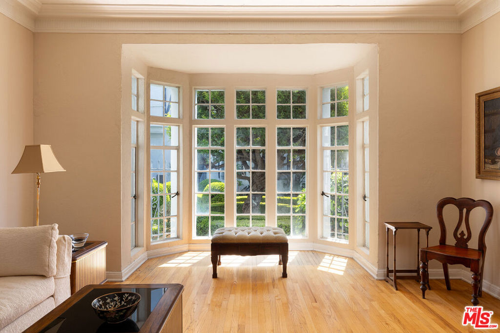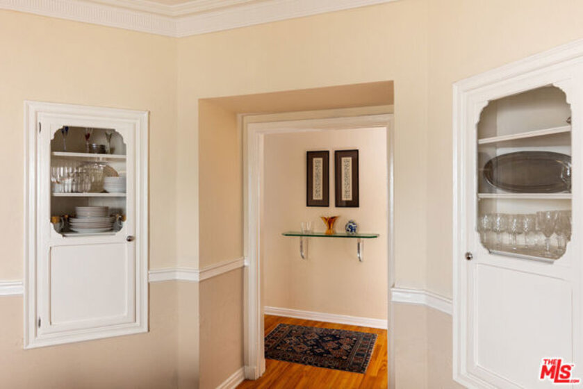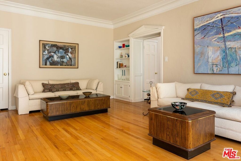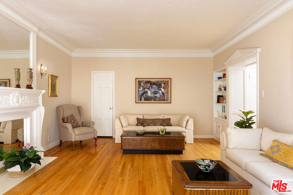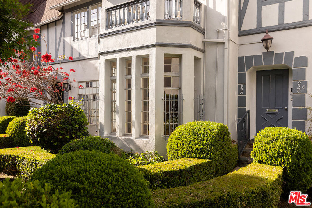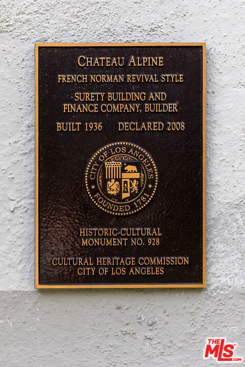 Welcome to Chateau Alpine, City of Los Angeles Cultural Historic Landmark #928. The topiary-lined walkway meanders through the central courtyard, inviting the visitor to slow down and absorb the dignified presence of the Norman Revival Architecture as they approach the unit. The complex was built in the waning years of the Great Depression, when even the best old-world craftsmen and high-quality building materials were plentiful and inexpensive. This allowed for a build quality at Chateau Alpine, both inside and out, that far surpasses today's building standards. Real lath-and-plaster walls enhance auditory privacy, while the living room's broken door pediment, dentilated crown moldings, and hardwood floors add a sense of genteel refinement. With the scale of the rooms and floor plan, 920 South Serrano lives more like a small house than a typical condominium. The grand scale of the living room feels like its own separate wing, with a prominent bay window overlooking the topiary of the central courtyard. A recently remodeled kitchen and bath provide modern comforts for those opting for convenience alongside the unit's historic fabric. Chateau Alpine is one of many important buildings on the street and surrounding neighborhood that have been designated with HCM status. The location is convenient to freeways, shopping and the ever burgeoning nightlife in the neighborhood.
